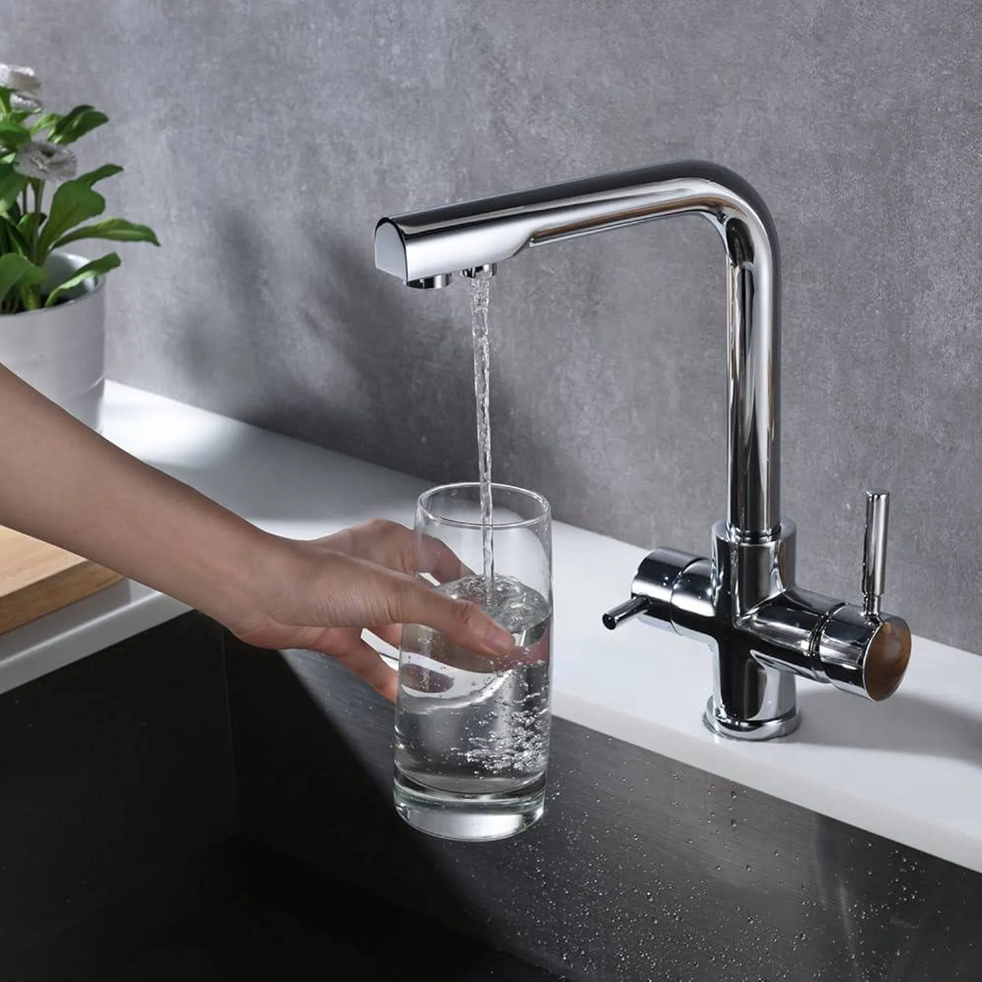 Le robinet filtrant vous permettra de réduire votre consommation de plastique. Equipé d’un filtre à charbon actif de 5µ, il élimine le goût et les odeurs de chlore et filtre les impuretés pour vous assurez une eau plus saine.